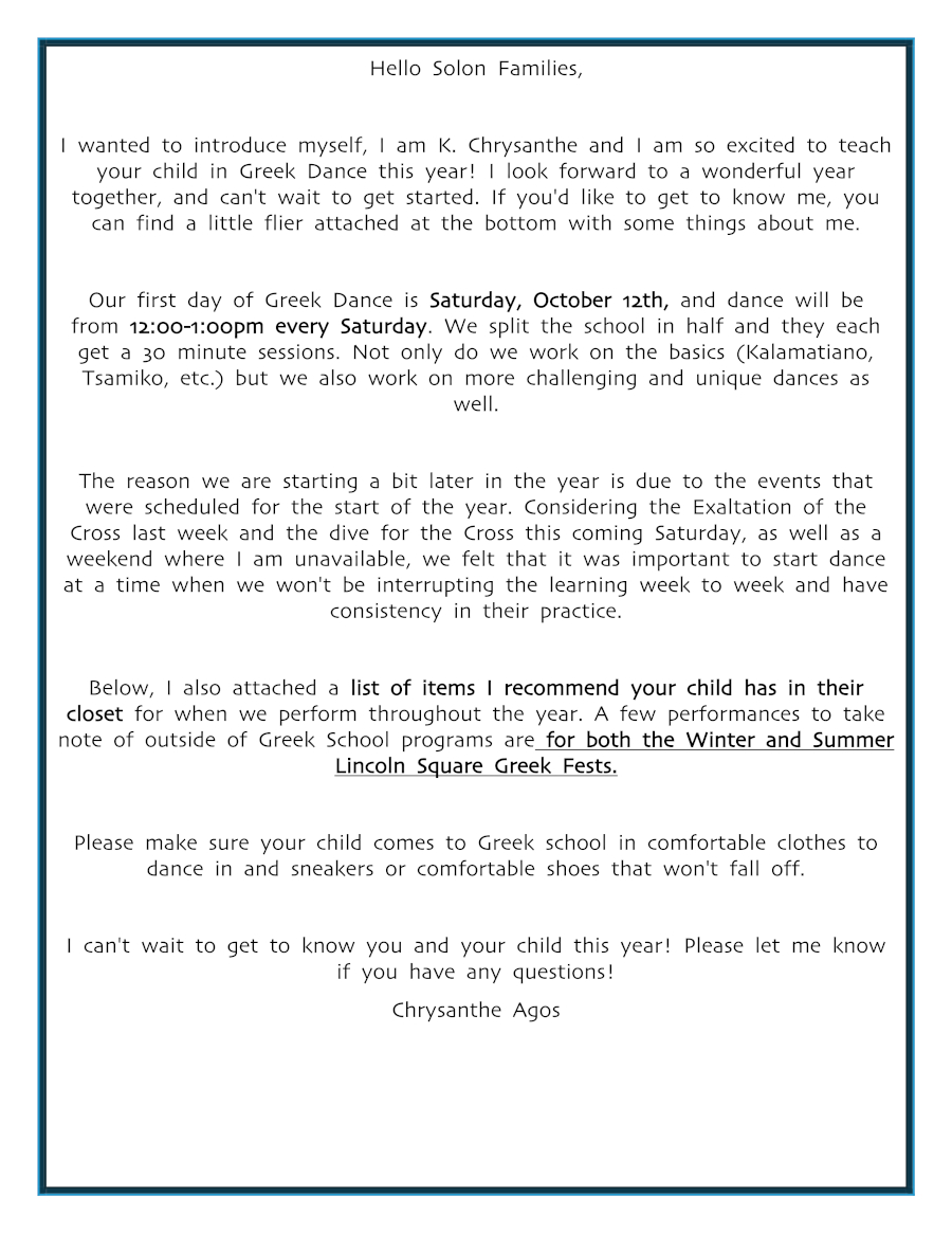 SATURDAY SOLON GREEK SCHOOL - REGISTRATION